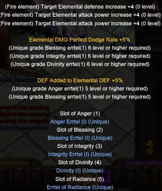 The only difference will be the Defense or the Elemental Attack, since in the example used it was a Mastery Errtel Passionate Blessing with the Elemental Defense option. Note that the last space shows which option will be activated: